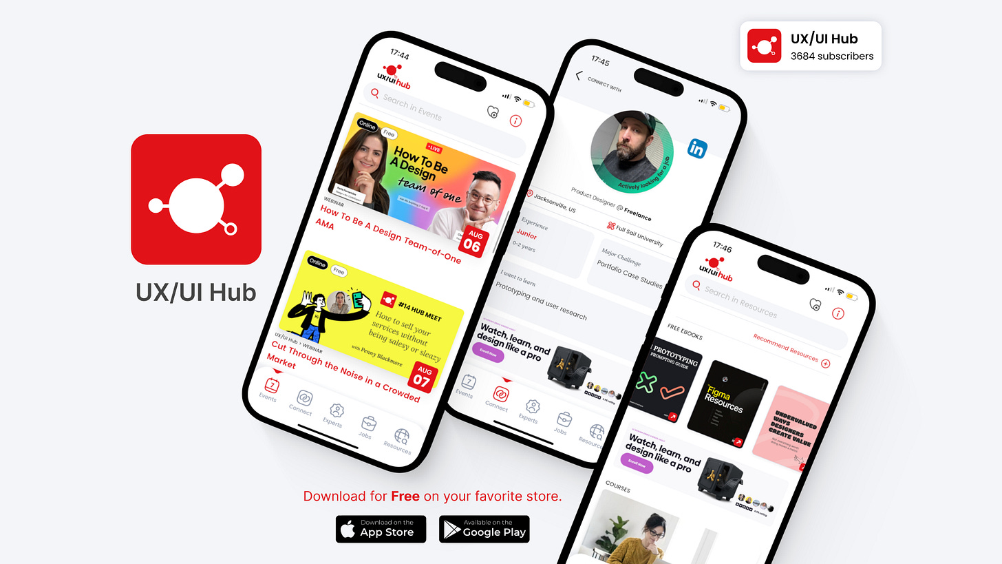 UX/UI Hub is free. 🍎 App Store / 🤖 Play Store